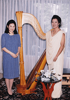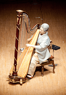京都府大原に生まれ、13歳よりハープを始める。